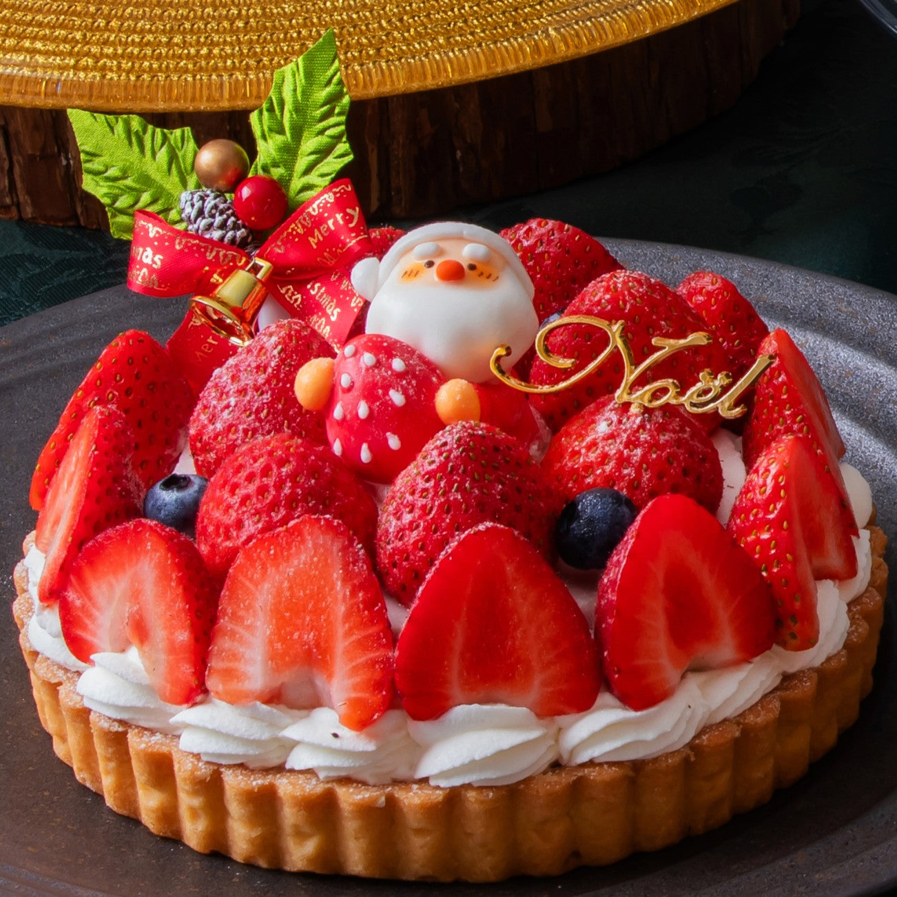 サクサクのタルト生地にダマンドクリームを重ね、苺のムースと生クリームをのせました。仕上げに福岡県産のあまおうをたっぷり飾った、クリスマス限定のいちごタルトです。